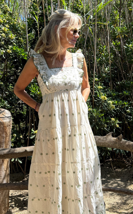 Lexy - Green Embroidered Flower