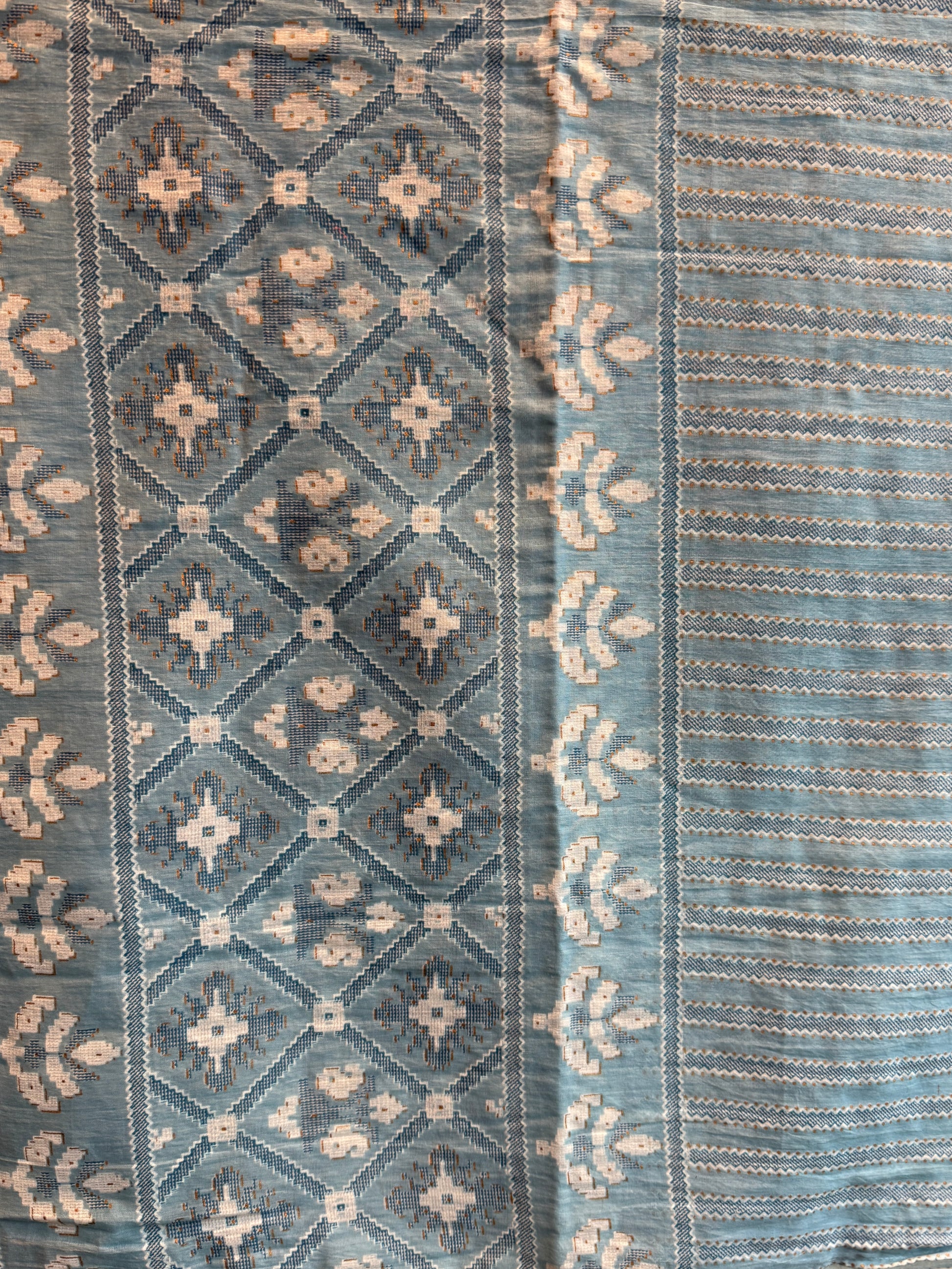 In a lovely pale blue grey this cotton voile sarong has a really fun geometric pattern.
