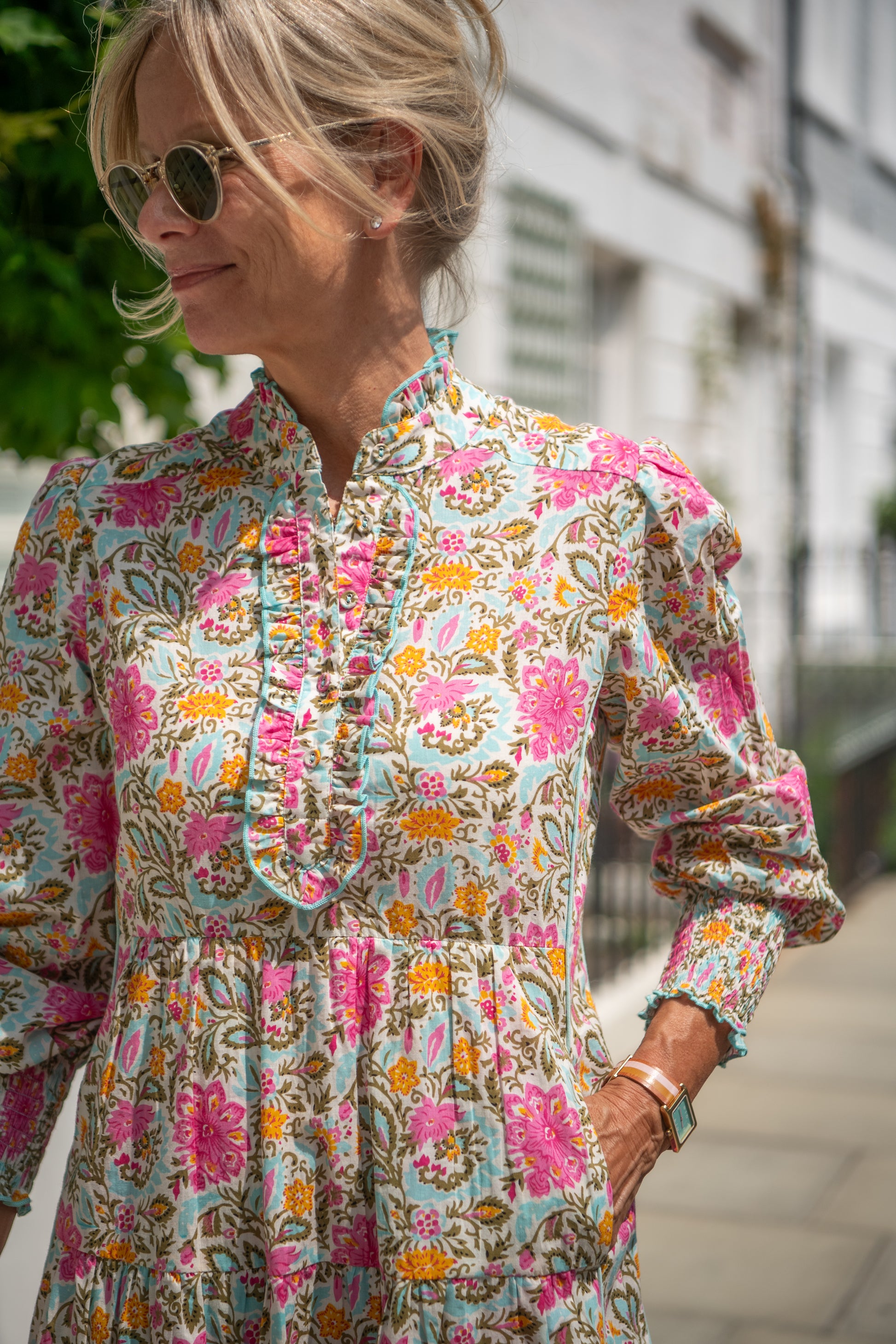 If you prefer to cover your arms, the Deborah has been a great option for so many of you. Here in a bright and multi coloured summery print we think you are going to love it! The dress offers a tailored fit over the shoulders and bust and a flared silhouette below the waist with inset pockets. This design is super popular in our collection due to its figure-flattering shape. This dress is perfect for effortless styling, allowing you to simply slip it on and go.
