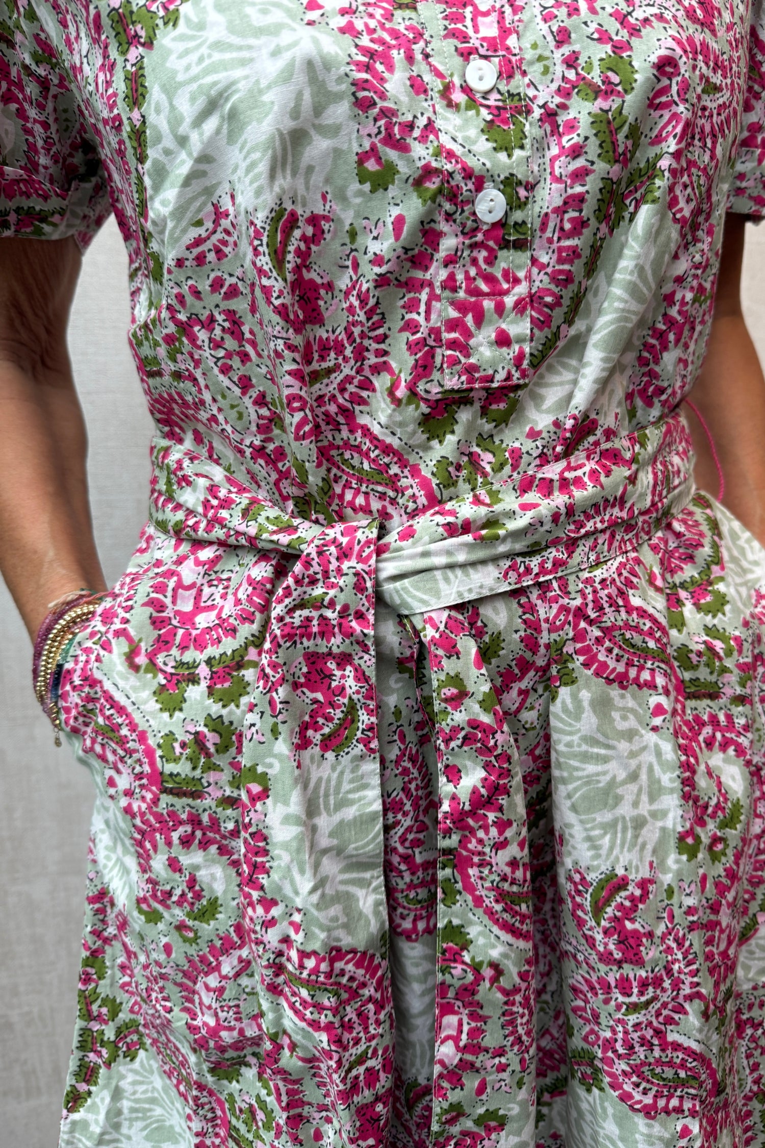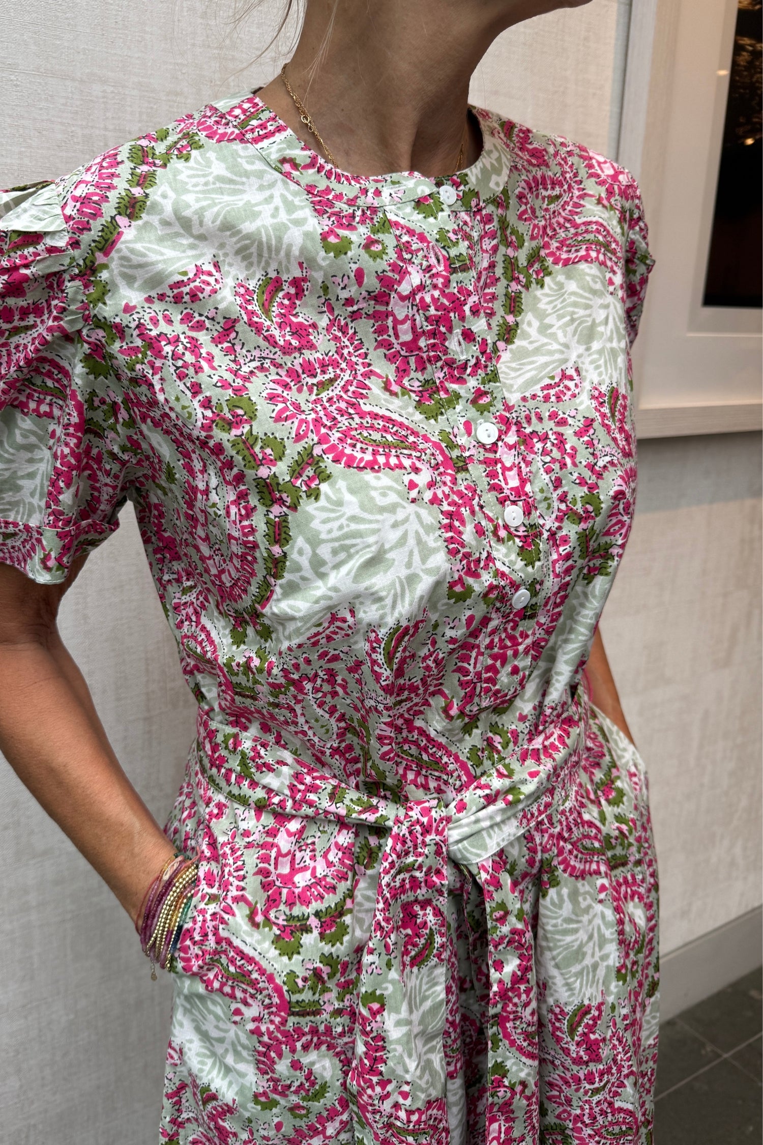 The Missy shirt dress is a timeless, ageless classic featuring delicate feminine accents. It offers a shorter option without being just for the youngsters, whether worn loosely or cinched with the accompanying wide fabric belt. This dress has a grandad shirt neckline, a partial button placket, and beautiful folded details on the puff sleeves. It also includes practical pockets and a shirt-style hemline. Perfect for the summer season with plimmies or sandals, grab a basket and go.....