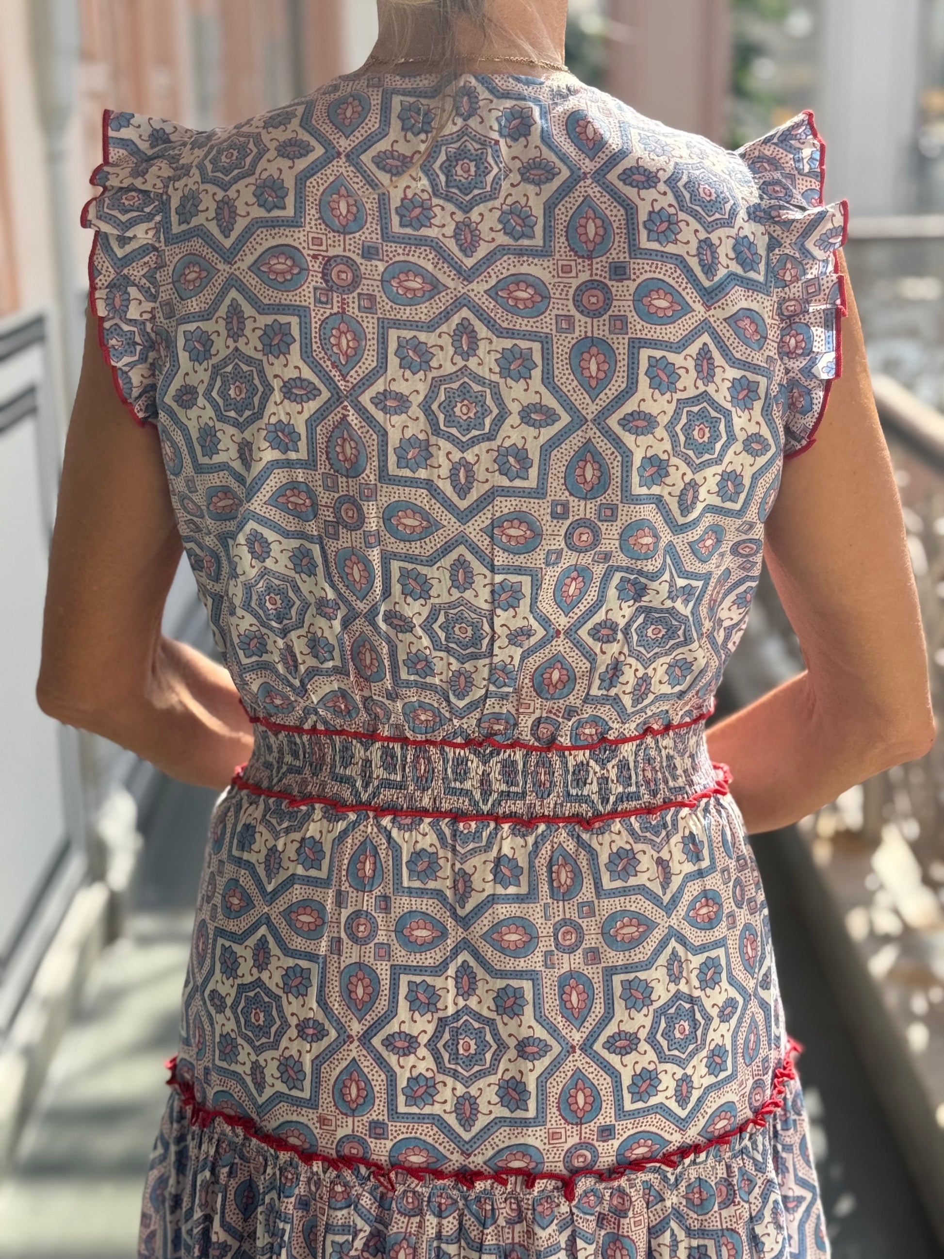 We have brought back the shirred waisted Nanda shape as per many requests and for those that are new to our designs this is a firm favourite!! Our easy summer dress that can go from town to beach from day to evening, dressed up or down. So comfortable and pretty with a lovely V-neck and a little flutter on the shoulder. The soft wide shirring on the waist is super flattering and makes it easy to wear. The dress is ankle length but can easily be shortened if needed.