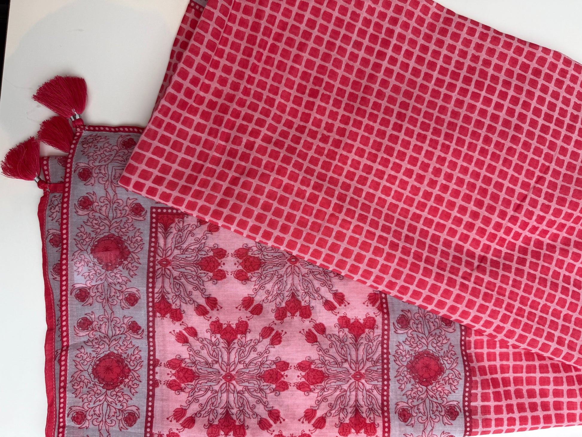 Really fun red chequered cotton voile sarong, great on a navy or black swimming costume.
